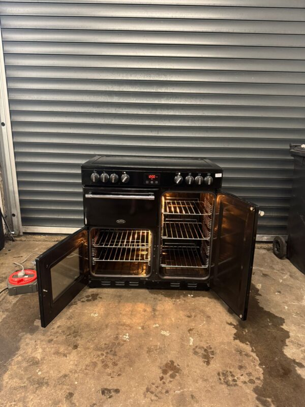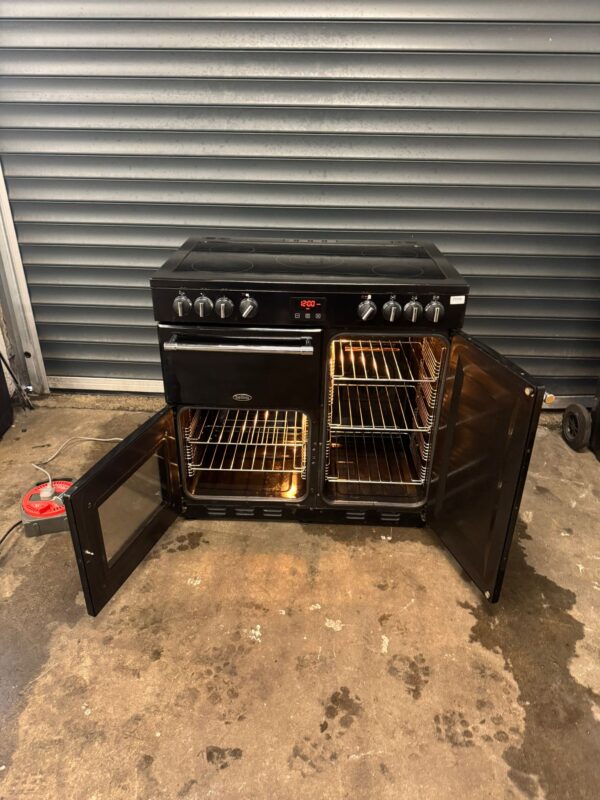 Black Belling Farmhouse 90e cm Range cooker comes with 3 months warranty, Ref:19596