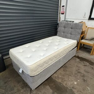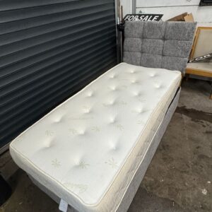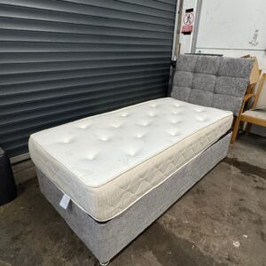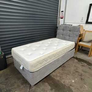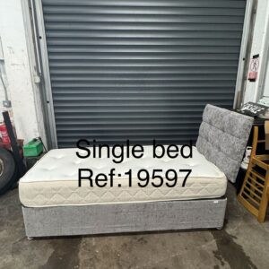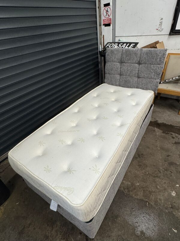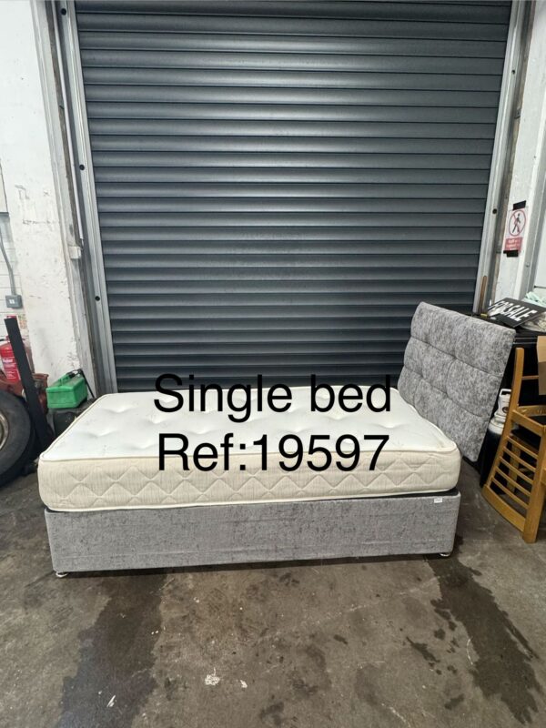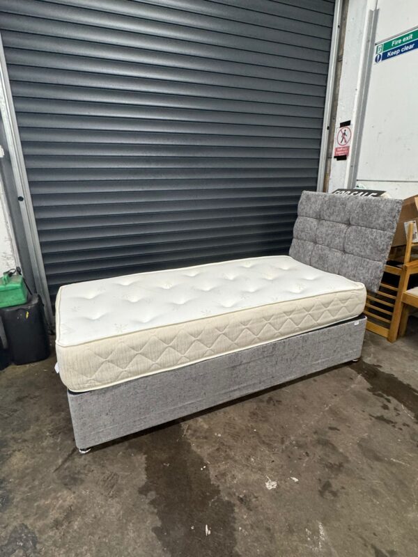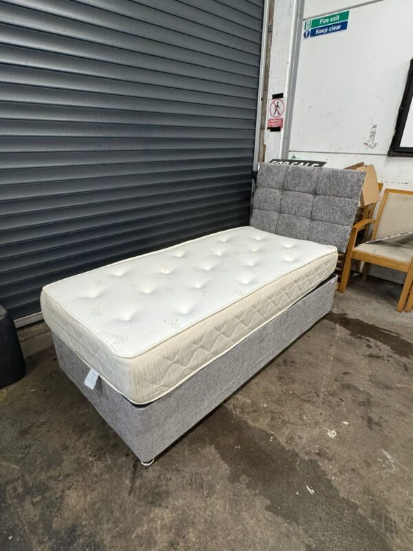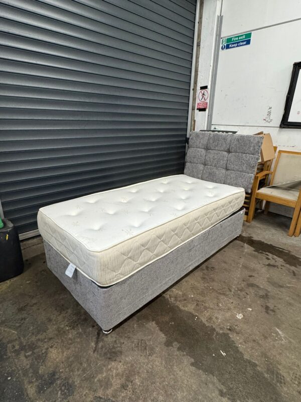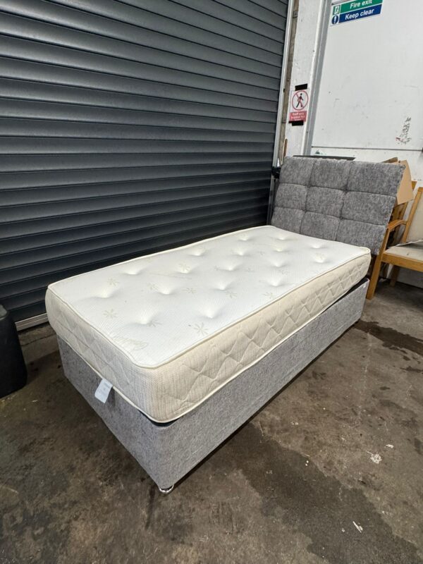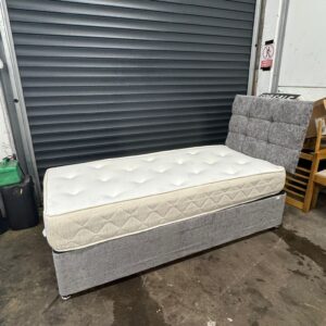 Grey single divan base, mattress & headboard, ref:19597