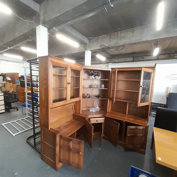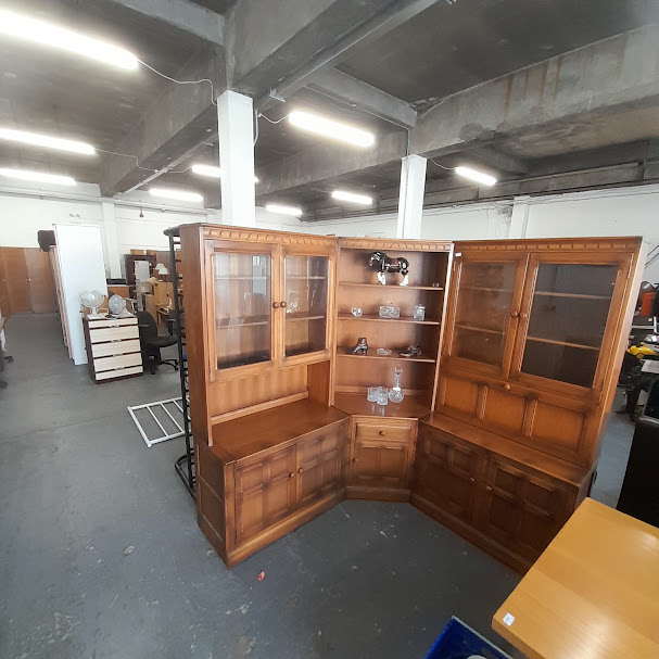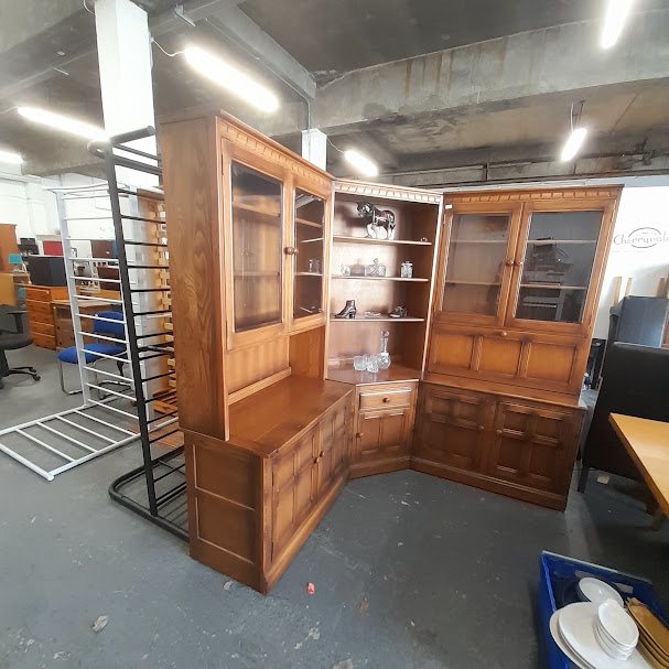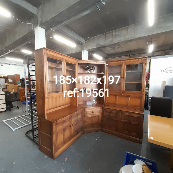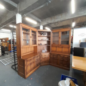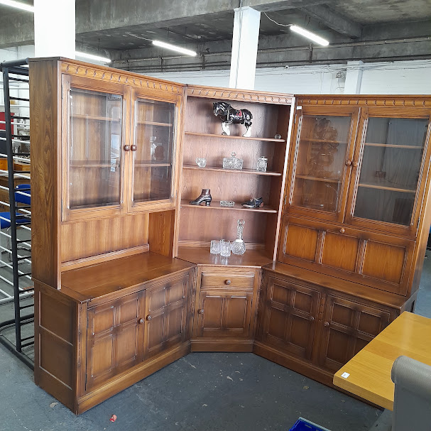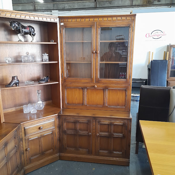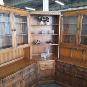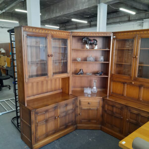 Large Ercol corner display 3 piece cabinet 185cm x 182cm x 197cm, Ref:19561, 19320
