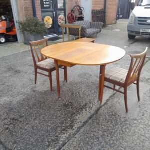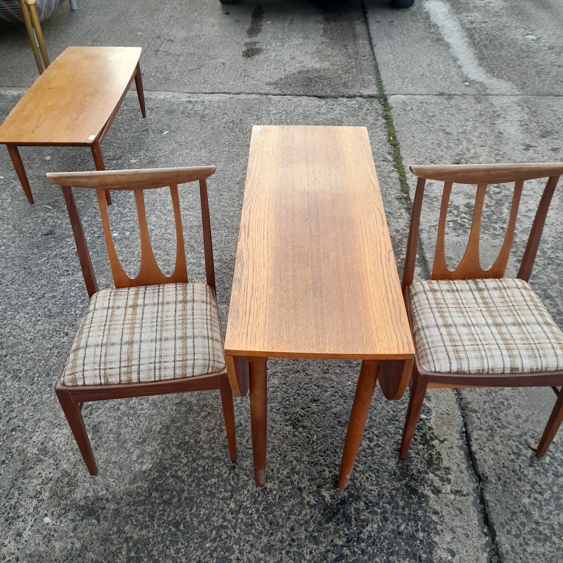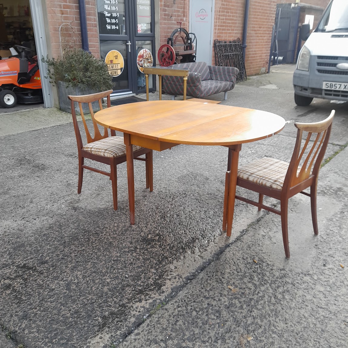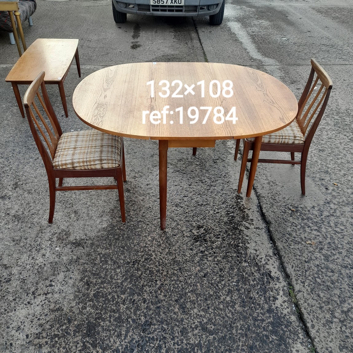 Mid Century drop leaf table 132cm x 108cm with 2 chairs, Ref:19784
