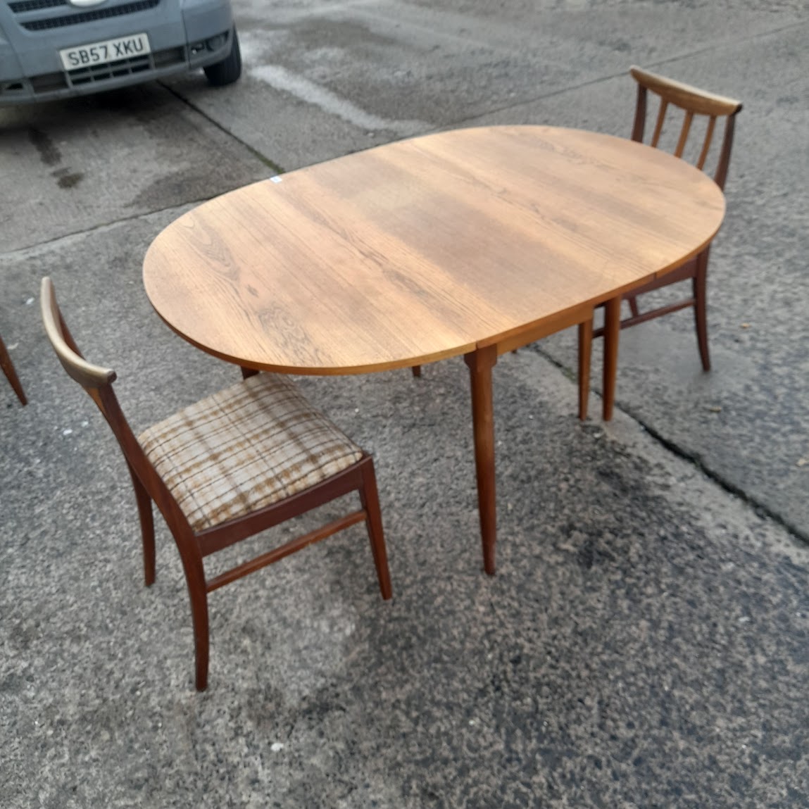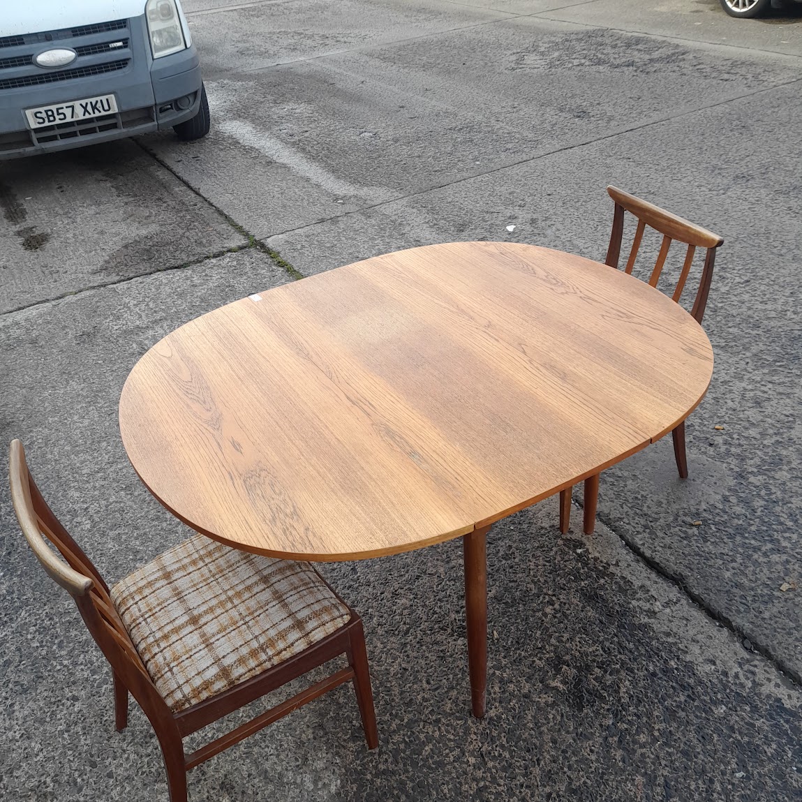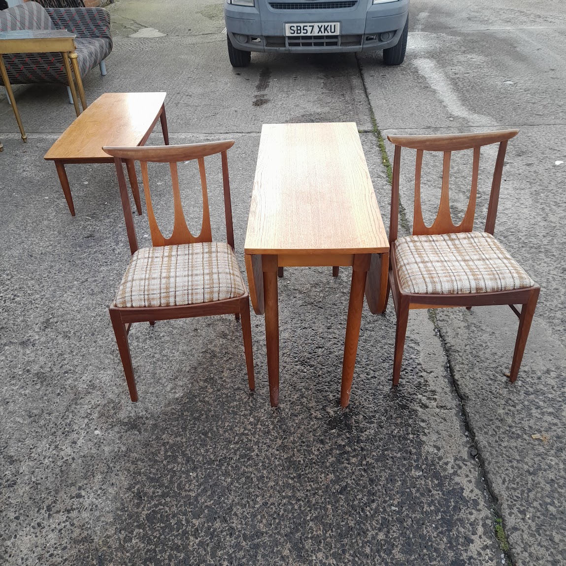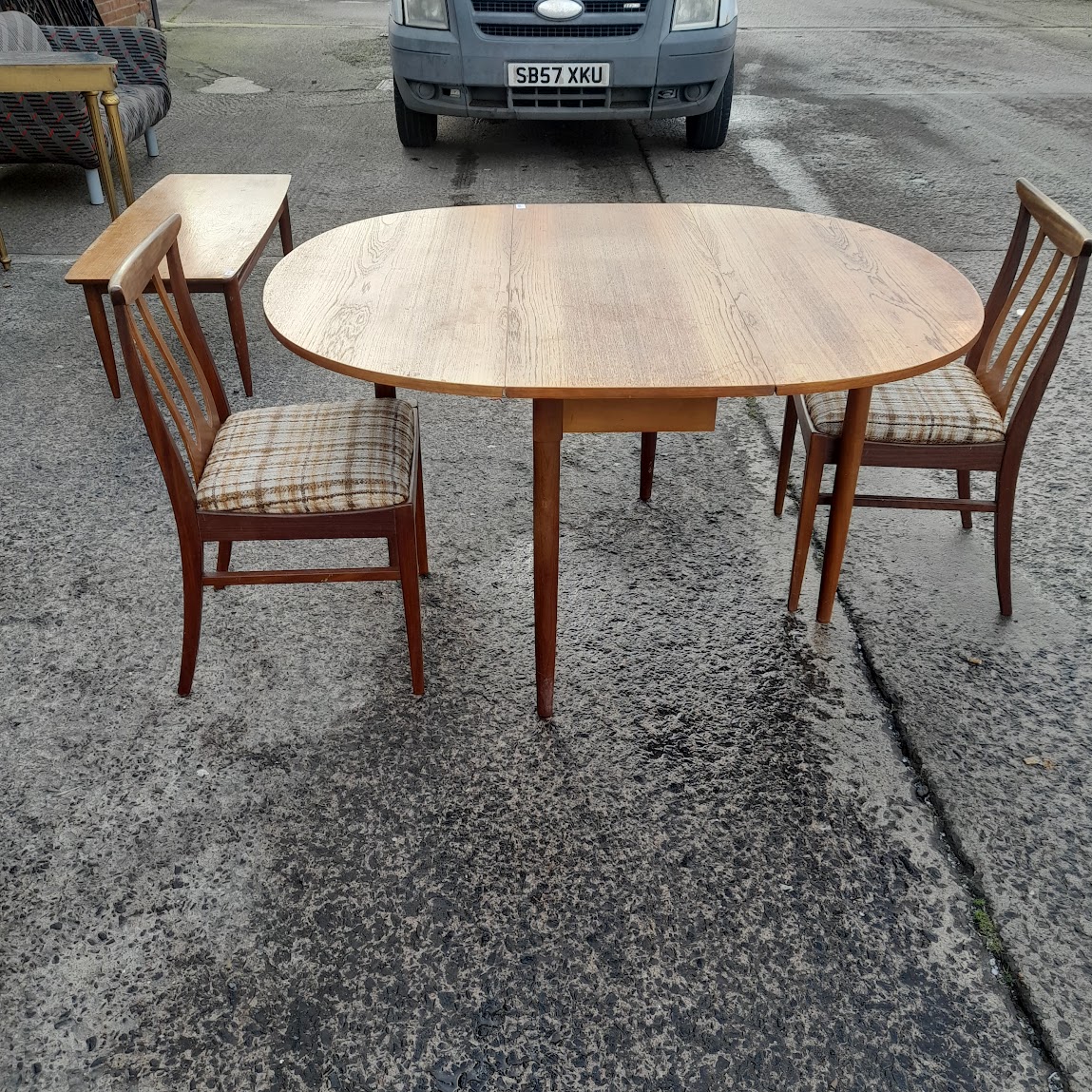 Mid Century drop leaf table 132cm x 108cm with 2 chairs, Ref:19784