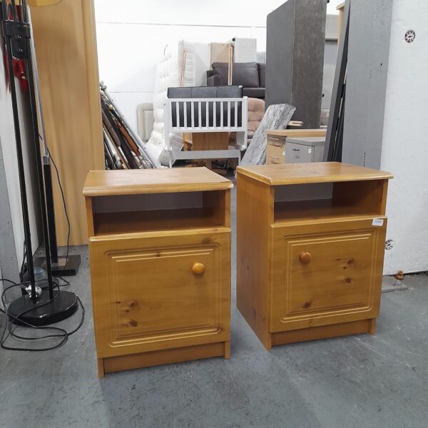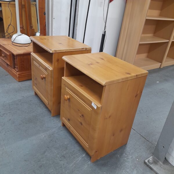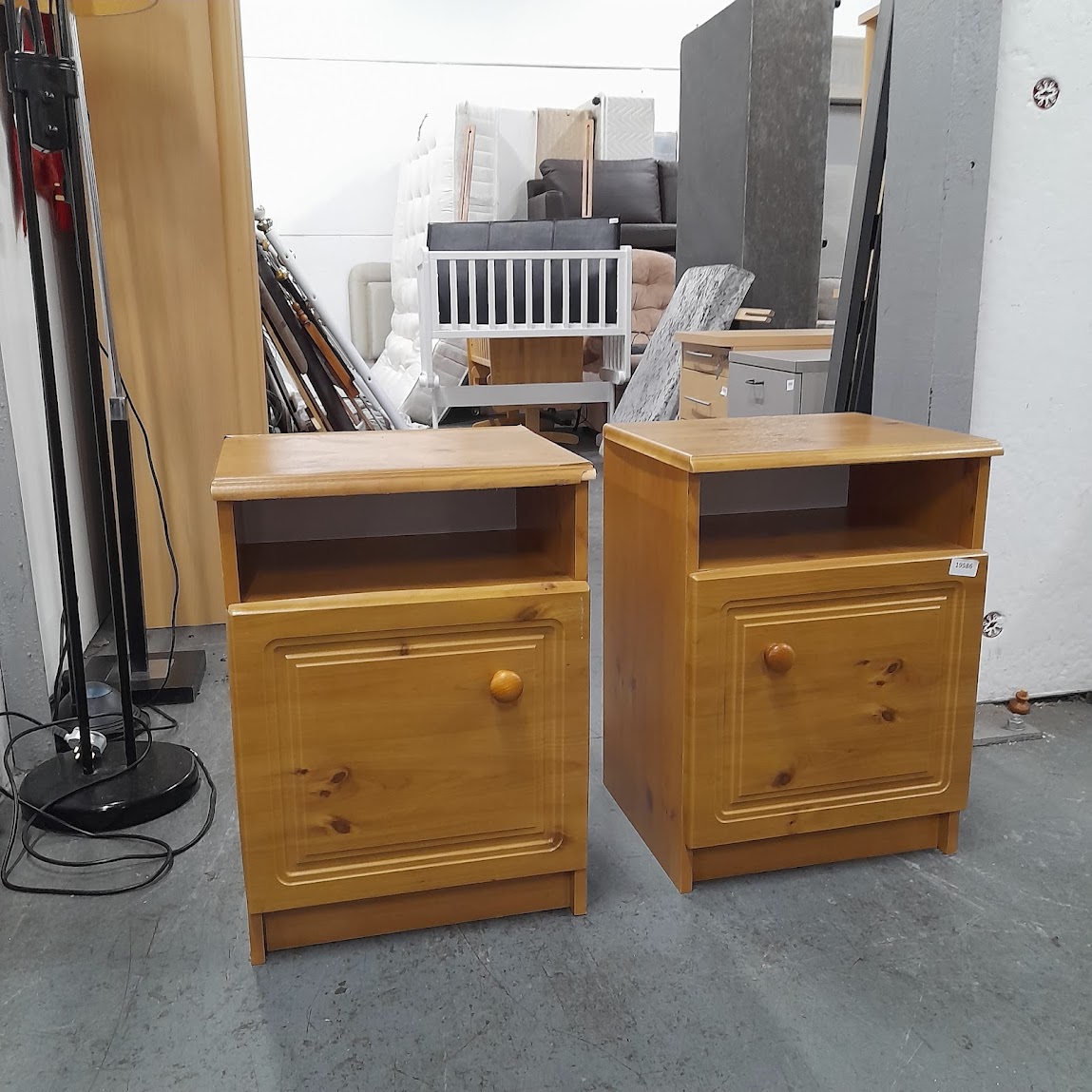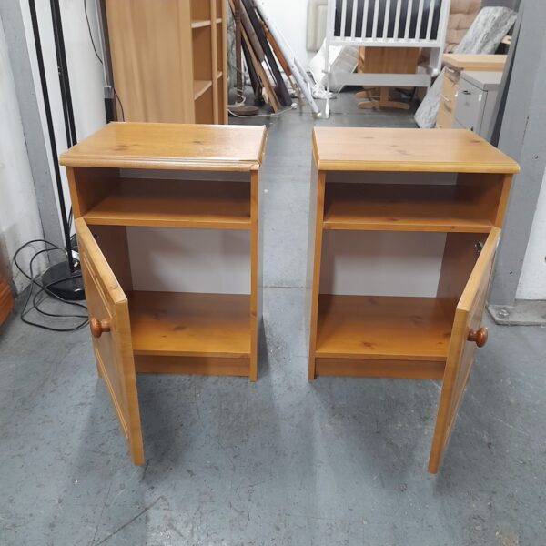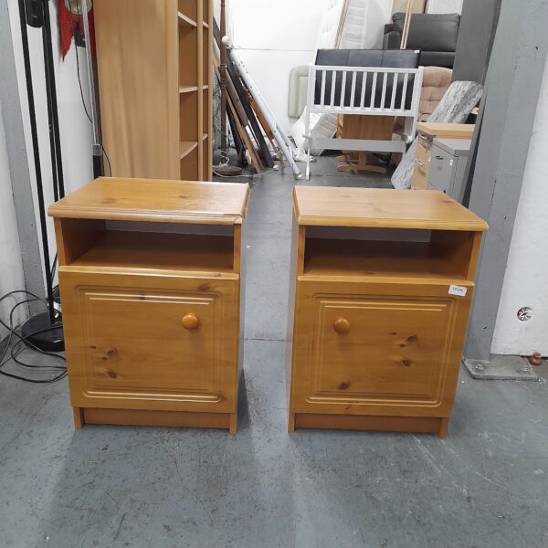 Pair of 1 door bedside cabinets top peeling 41cm x 35cm x 57cm, Ref:19586