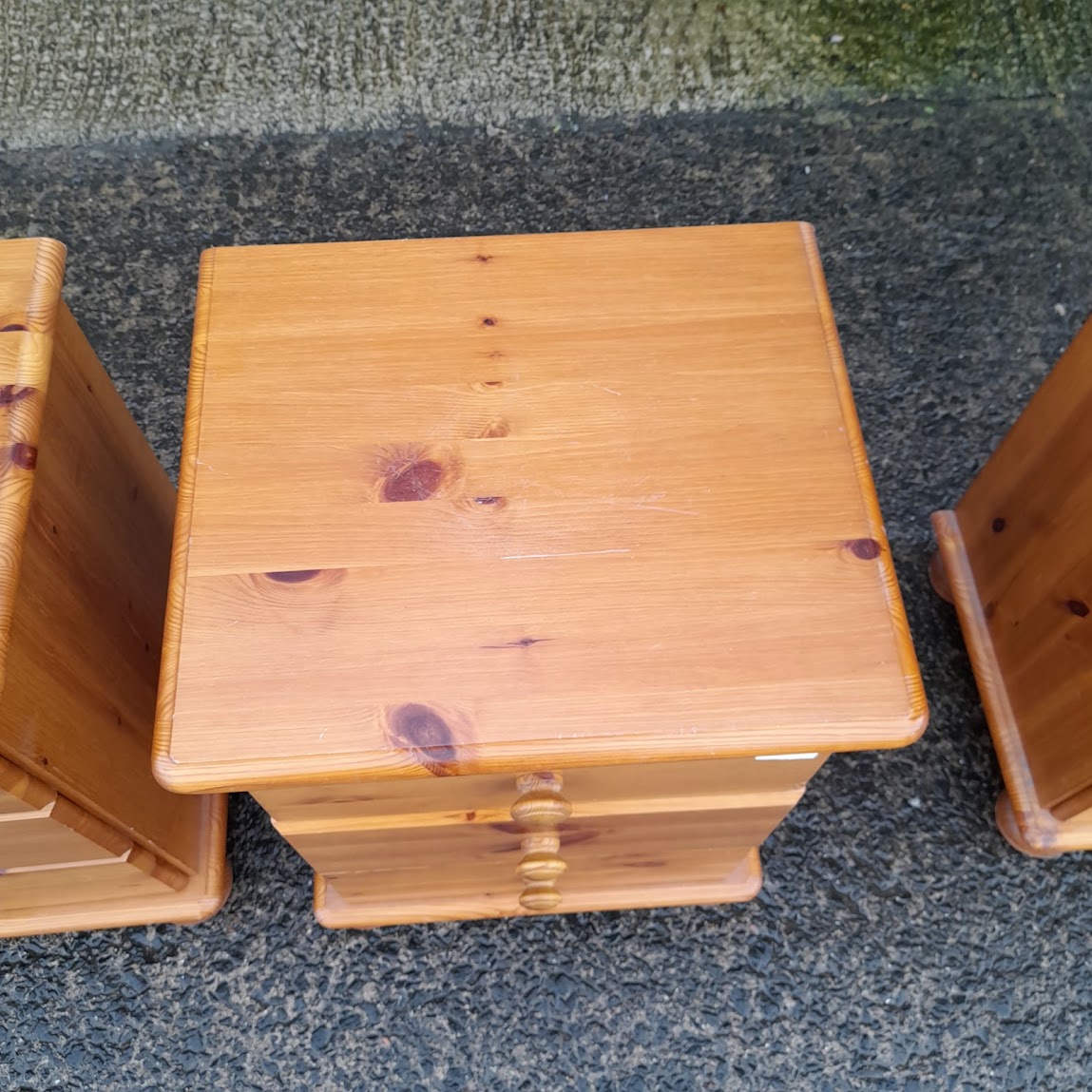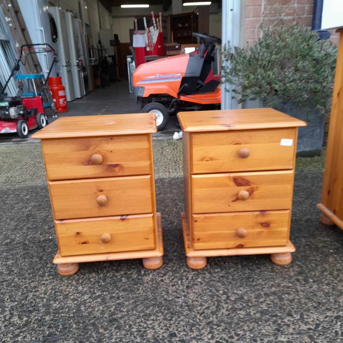 Pair of pine 3 drawer bedside cabinets, Ref:19847