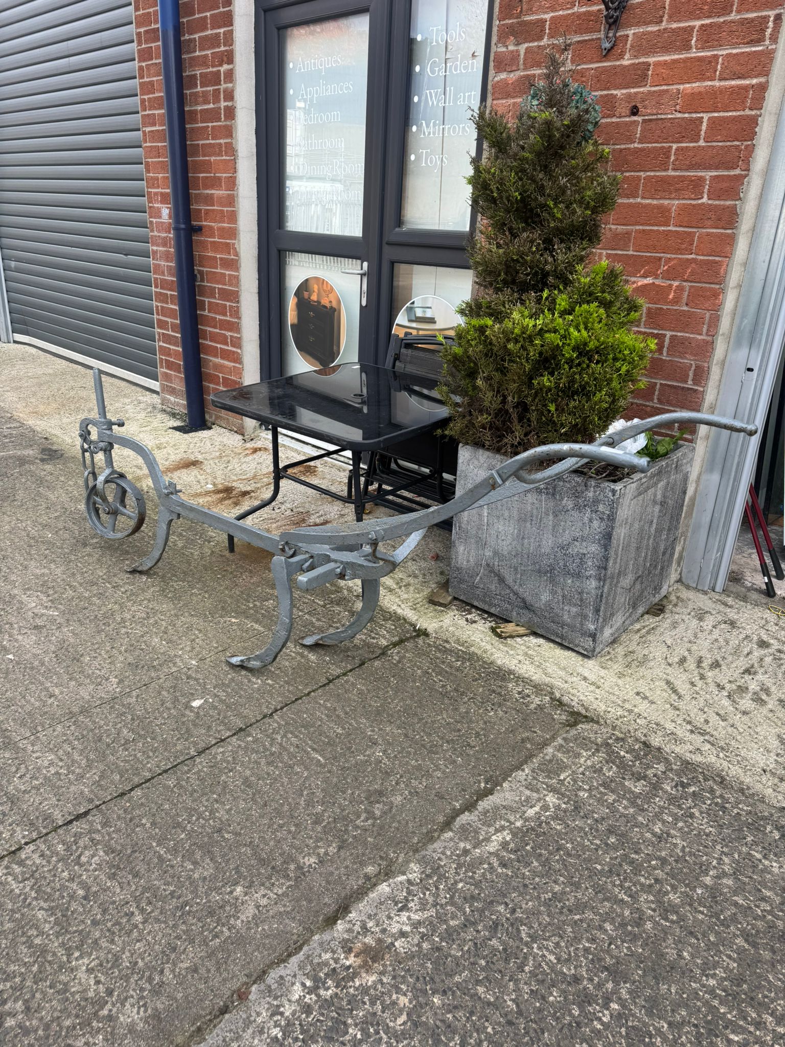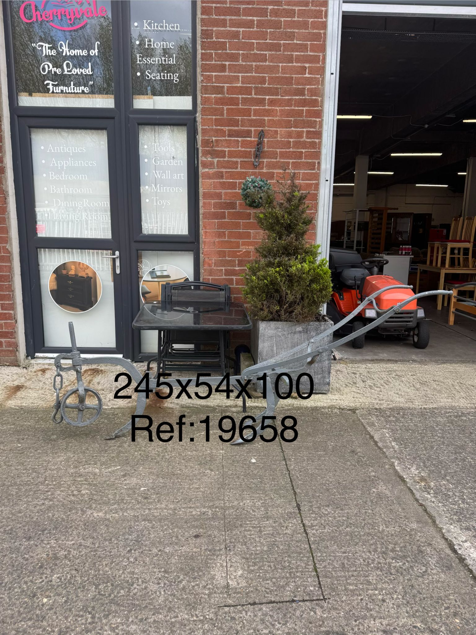 Vintage decorative cast iron horse drawn plough 245cm x 54cm x 100cm, Ref:19658