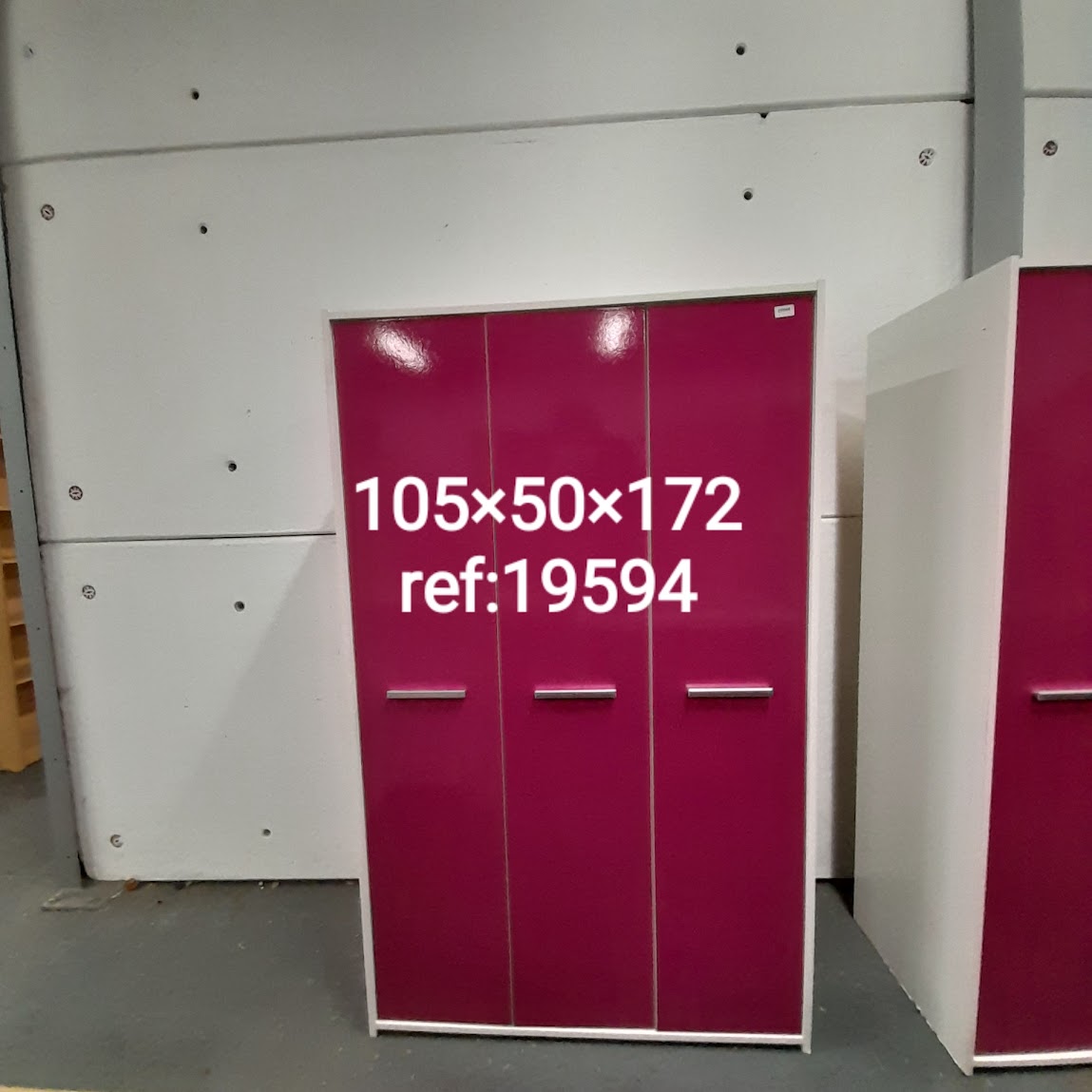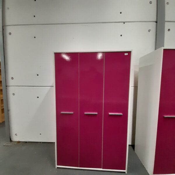 White and pink 3 door wardrobe 105cm x 50cm x 172cm, Ref:19594