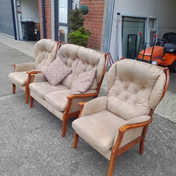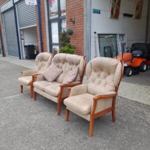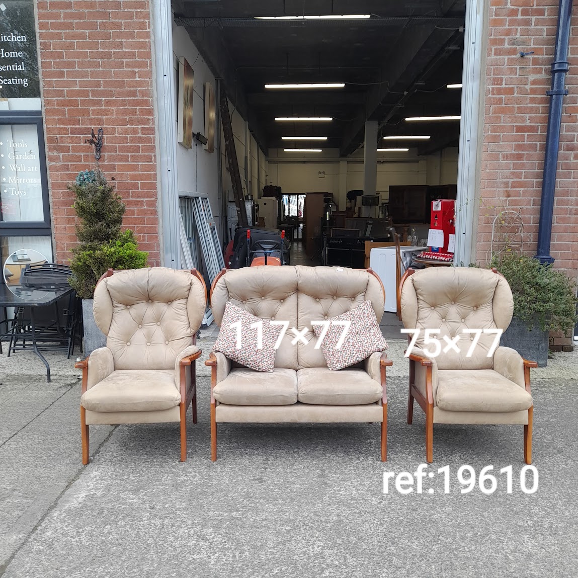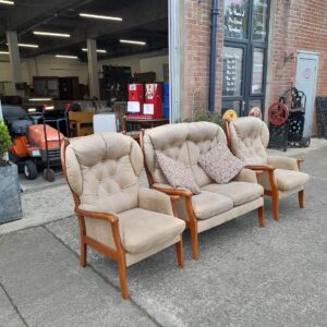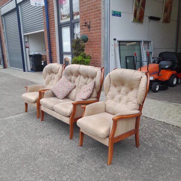 Wing backed 2 seater sofa 117cmx77cm and 2 wing backed chairs 75cmx77cm, Ref:19610
